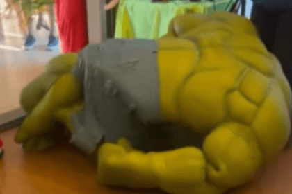 Hulk tropeça e cai assustando crianças em festa infantil