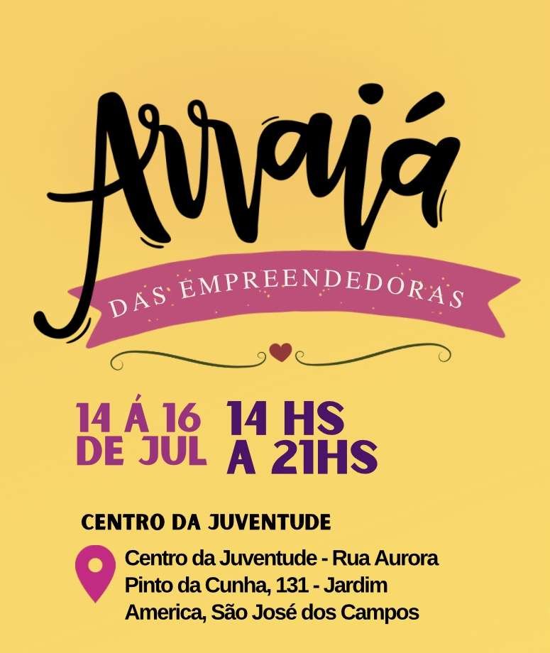 A primeira edição do Arraiá das Empreendedoras, evento gratuito, acontecerá no Centro da Juventude, em São José dos Campos, de 14 a 16 de julho, das 14 às 21 horas. A atividade contará com uma feira de expositoras, painéis interativos para debater assuntos do universo do empreendedorismo, muita troca de experiências e momentos de networking. Além disso, arrecadará doações de alimentos e roupas, por meio da Barraca do Afeto.