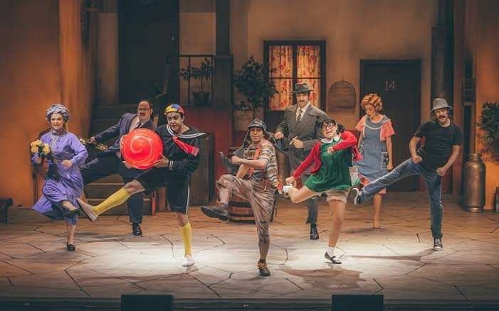 No palco, que mede 25 metros de largura, o cenário reproduz a famosa vila original de Chaves. O espetáculo apresenta números de magia, malabarismo, acrobacias, trapézio, contorcionismo e, claro, muita diversão com piadas clássicas do seriado.