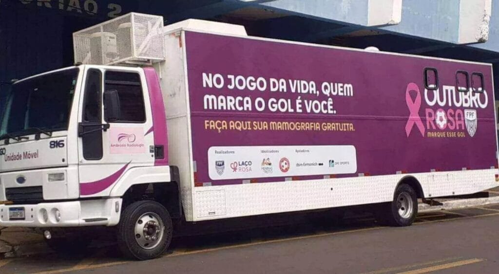 A FPF (Federação Paulista de Futebol), em parceria com o São José EC, vai trazer ao estádio Martins Pereira a carreta da mamografia. A ação, que faz parte da campanha mundial do Outubro Rosa (alerta para o diagnóstico precoce do câncer e mama), será realizada no dia 25 de outubro, em frente ao estádio joseense.