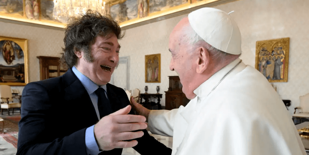 Francisco e Javier Milei tiveram uma reunião de aproximadamente 70 minutos no Vaticano, onde discutiram economia e planos do presidente para a Argentina. Durante a conversa, segundo o Infobae, Milei pediu desculpas por declarações anteriores, ao que Francisco respondeu que são “erros comuns da juventude”.