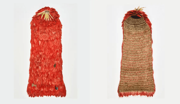 O manto é uma vestimenta de 1,80 metro de altura, confeccionada com penas vermelhas de guará sobre uma base de fibra natural e chegou ao Museu Nacional da Dinamarca (Nationalmuseet) há mais de três séculosanos, em 1689. Provavelmente foi produzido quase um século antes.