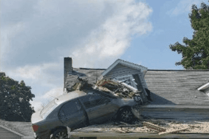 Condutor perde a direção e carro ‘voa’ para dentro do 2.º andar de casa